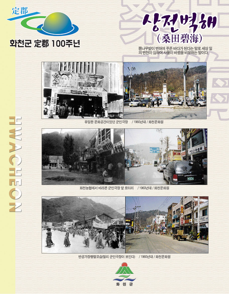 상전벽해 행복한 마음, 신나는삶, 밝은 화천군에 오신것을 환영합니다. 페이스북 트위터 인스타그램 카카오스토리 프린트 화천의역사 일제시대 50년대 60년대 70년대 80년대 90년대 화천의 미래 상전벽해 그외 기록들 상전벽해 화천의 역사를 사진으로 보실 수 있습니다. 아래 돋보기 버튼을 클릭하시면 큰 사이즈로 보실 수 있습니다 이미지 확대보기 닫기 이미지 확대보기 닫기 이미지 확대보기 닫기 이미지 확대보기 닫기 이미지 확대보기 닫기 이미지 확대보기 닫기 이미지 확대보기 닫기 이미지 확대보기 닫기 이미지 확대보기 닫기 이미지 확대보기 닫기 이미지 확대보기 닫기 이미지 확대보기 닫기